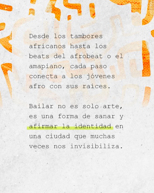 En los barrios donde resuena el tambor, la juventud afro transforma el ritmo en identidad, la danza en territorio, y el escenario en un espacio de libertad. Bailar es decir “aquí estamos”, con fuerza, con historia y con alegría que se hereda y se comparte.